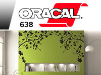 Oracal 638 è una pellicola morbida in PVC con superficie opaca, adatta alla lavorazione sui plotter da intaglio. Usata per la realizzazione di scritte e decorazioni per pareti interne, in particolare su superfici con carta da parati. Film disponibile anche metallizzato.